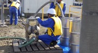 【海上】ひしゃくから回収した油をポンプで吸い上げ