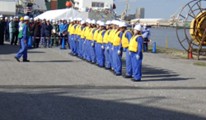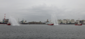 新港共同防災組織到着/一斉放水準備     海上部隊、陸上部隊一斉放水