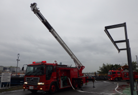 ・油回収、ガイドレールの取付けがテキパキと行われ、操法の様子は自社でも取り入れて行きたい。
